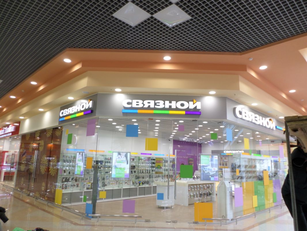 РА "Пирамидой" для салона "СВЯЗНОЙ" были изготовлены объемные световые буквы, световые короба, информационные доски, слоганы. Была осуществлена поклейка витрин витражной пленкой.